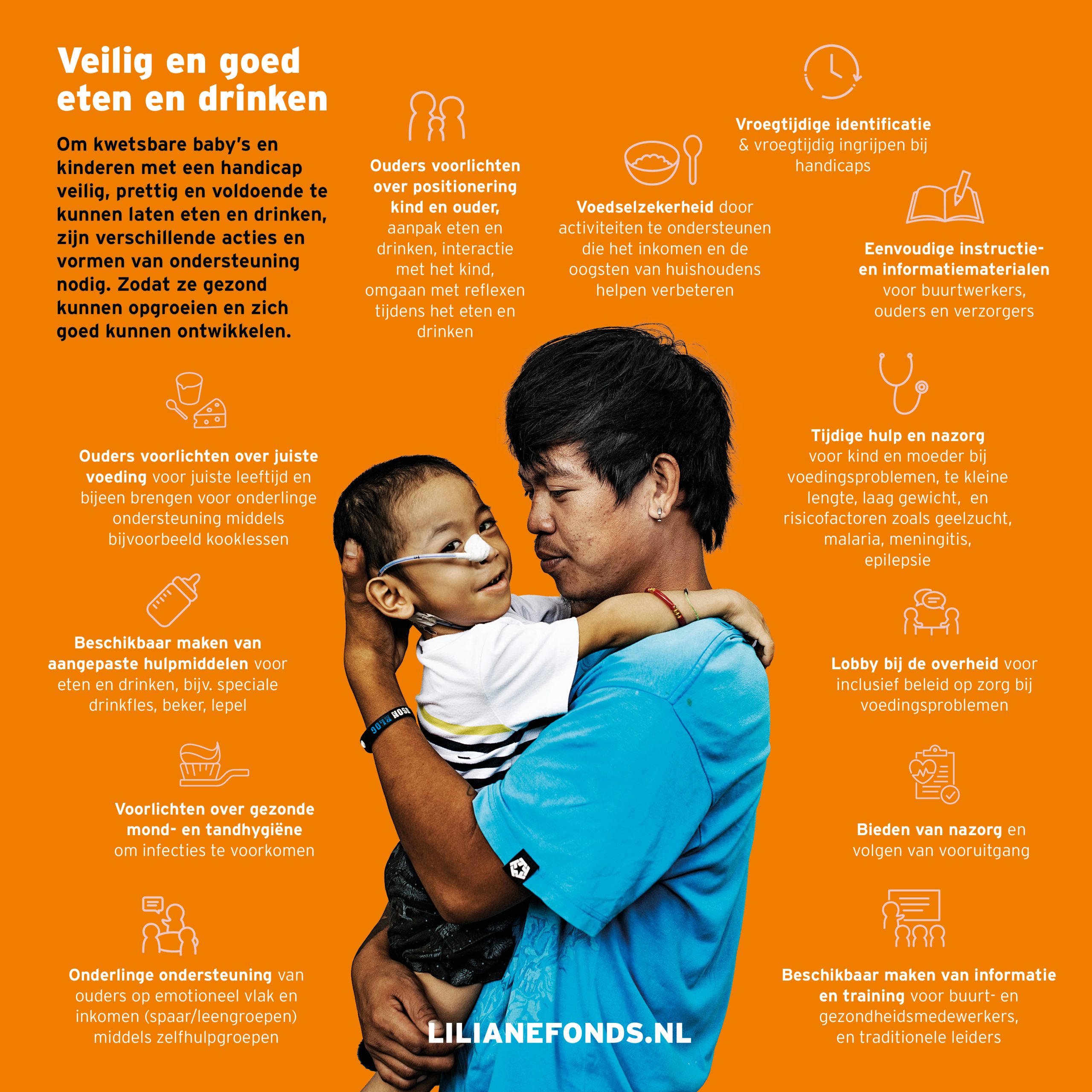 Voor kinderen met een beperking kunnen voedingsproblemen ernstige gevolgen hebben. Ze hebben vaak problemen met eten en drinken, ze verslikken zich vaak en kunnen niet altijd kauwen of drinken. Veel van deze kinderen zijn daardoor ondervoed.